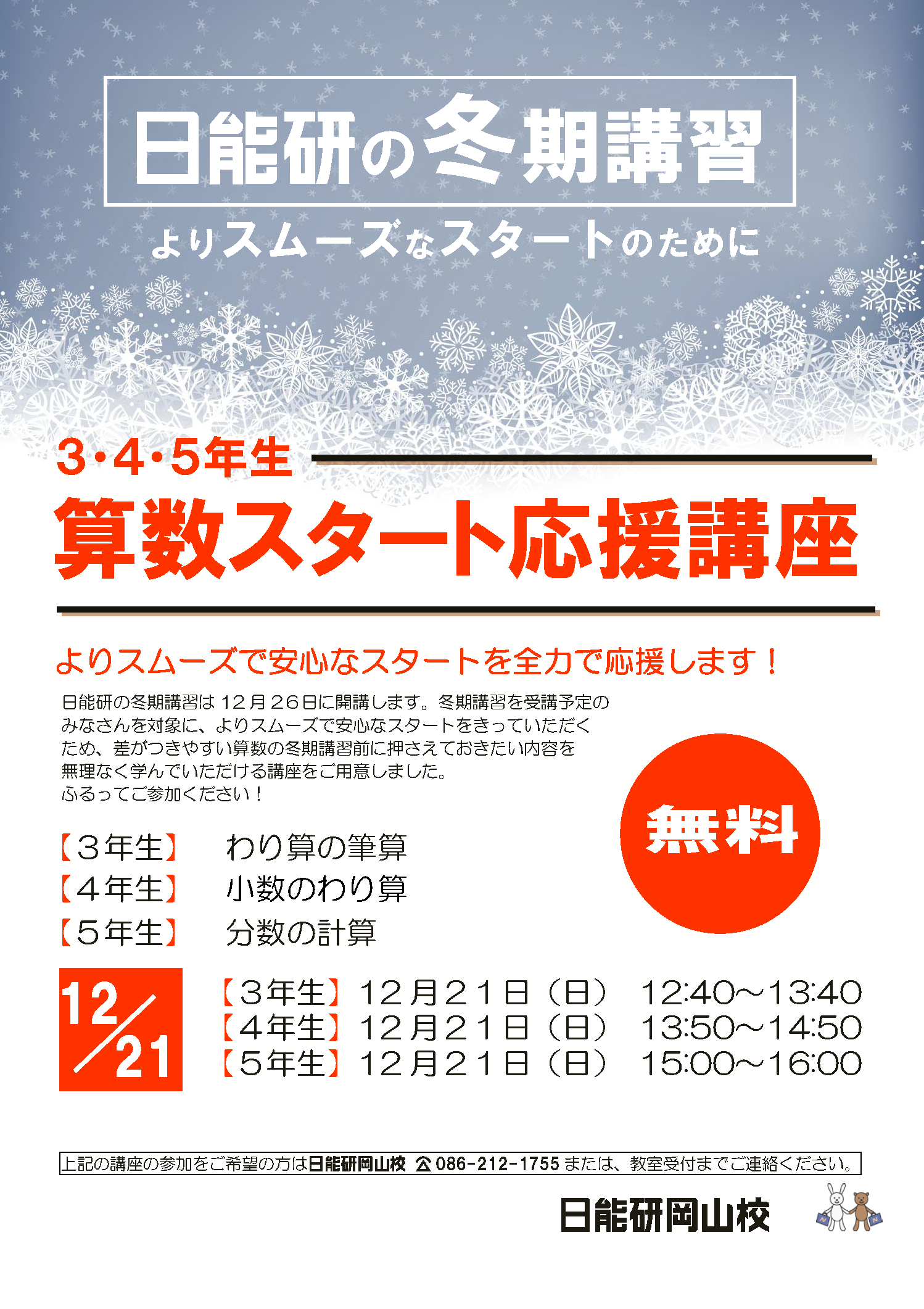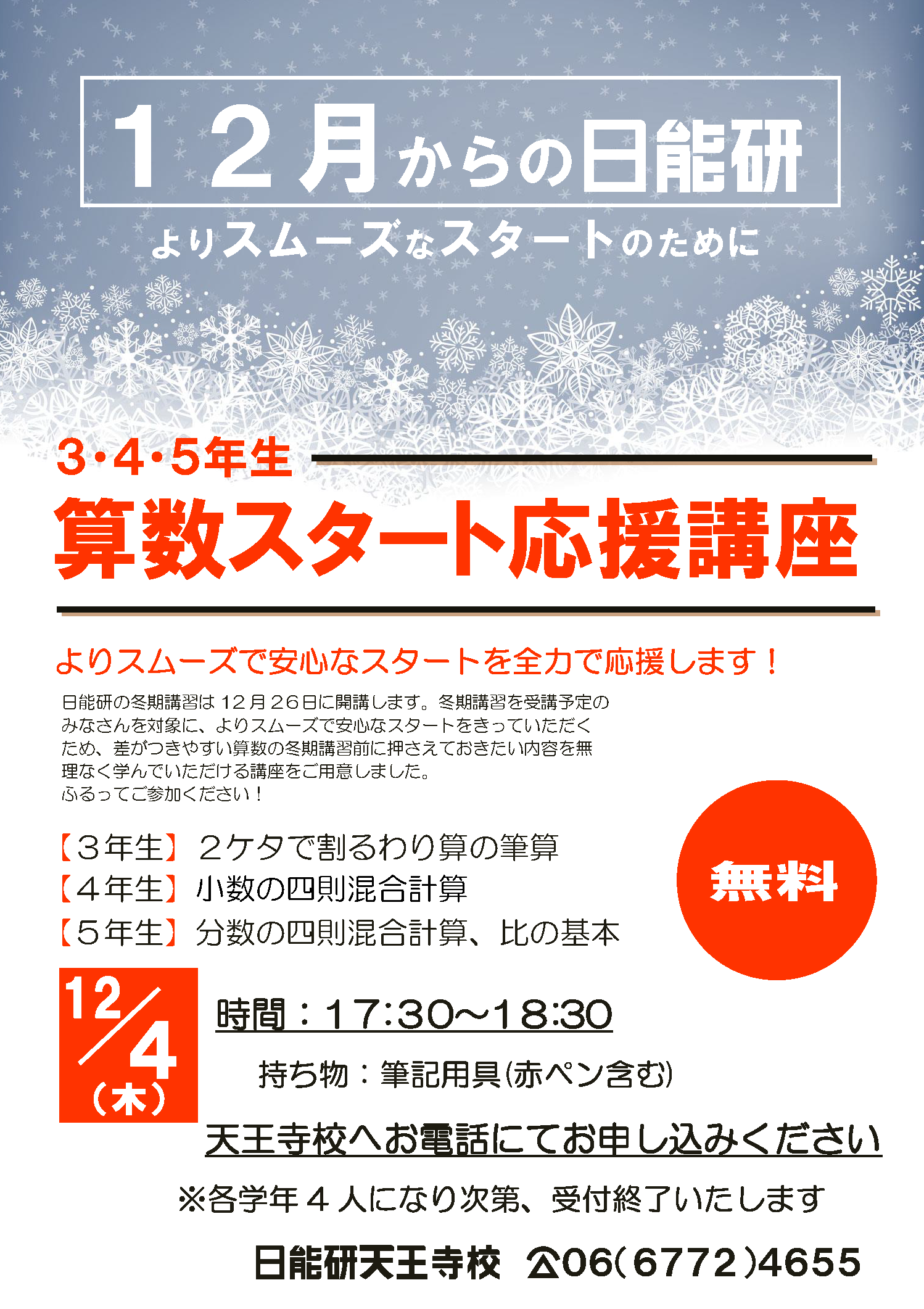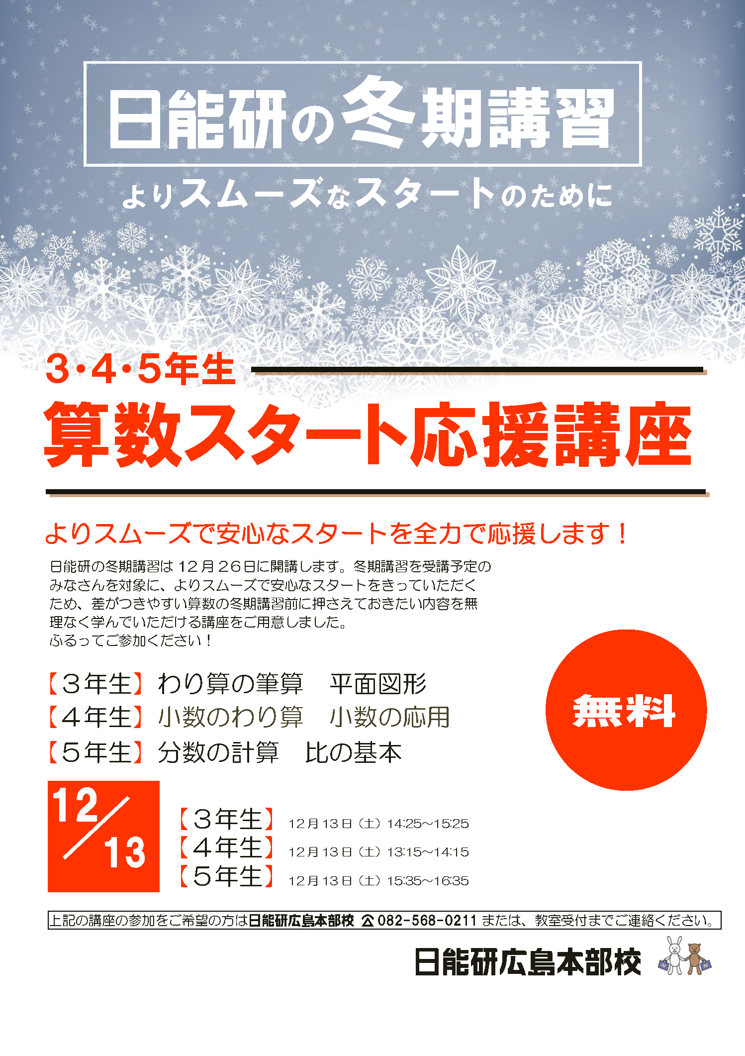 充実した、学び多い冬期講習を一緒に過ごしましょう!