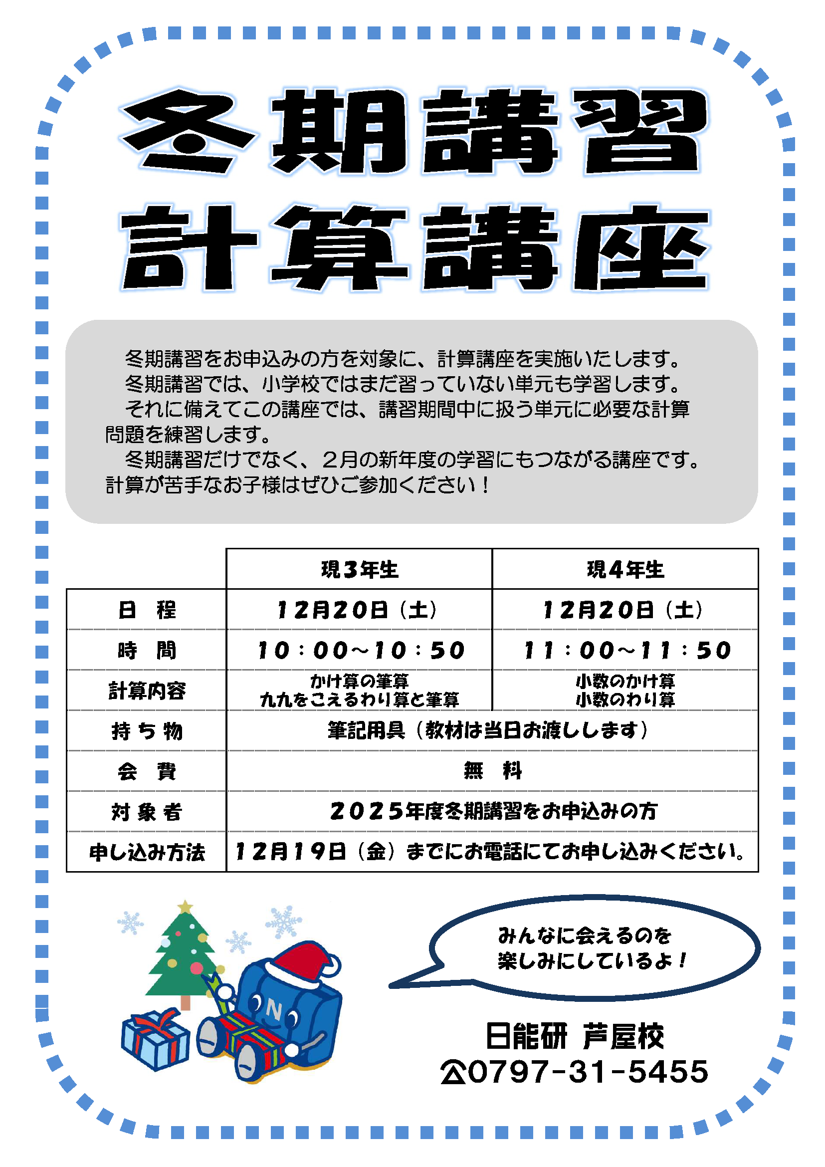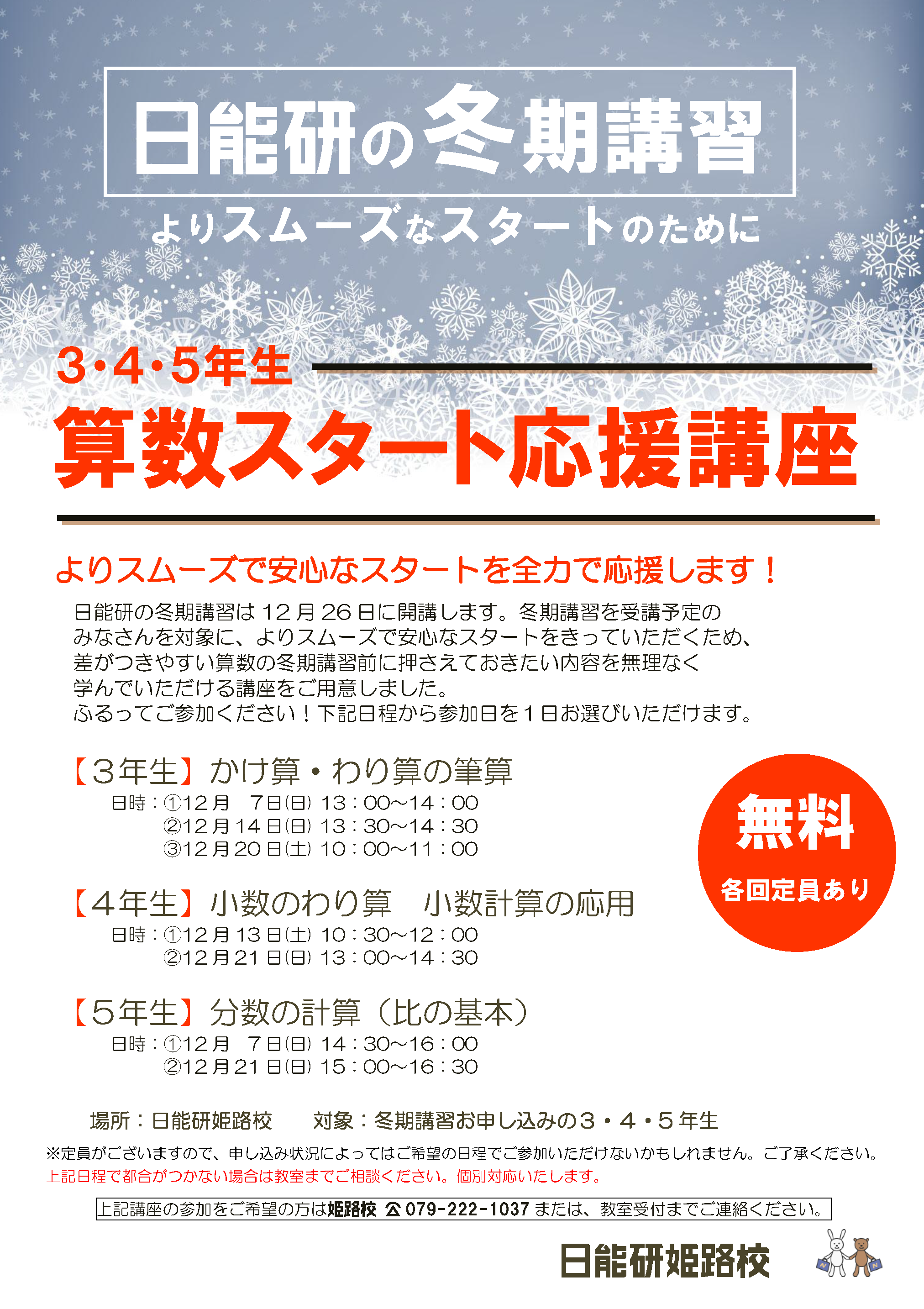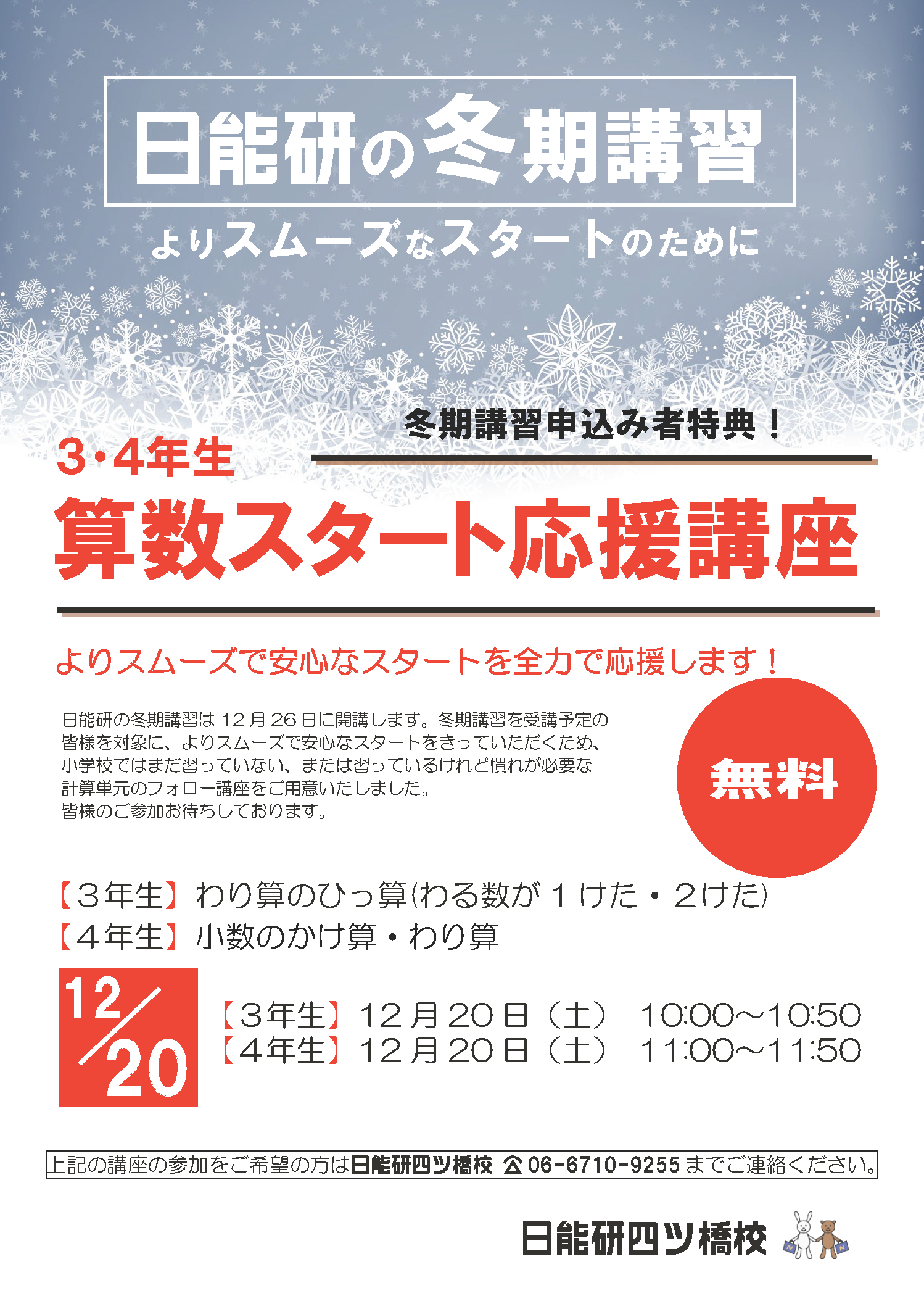 充実した、学び多い冬期講習を一緒に過ごしましょう!